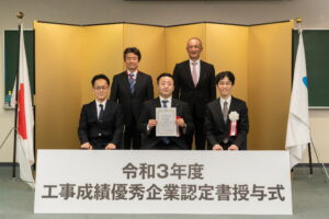 令和3年度工事成績優秀企業認定書を受賞しました。