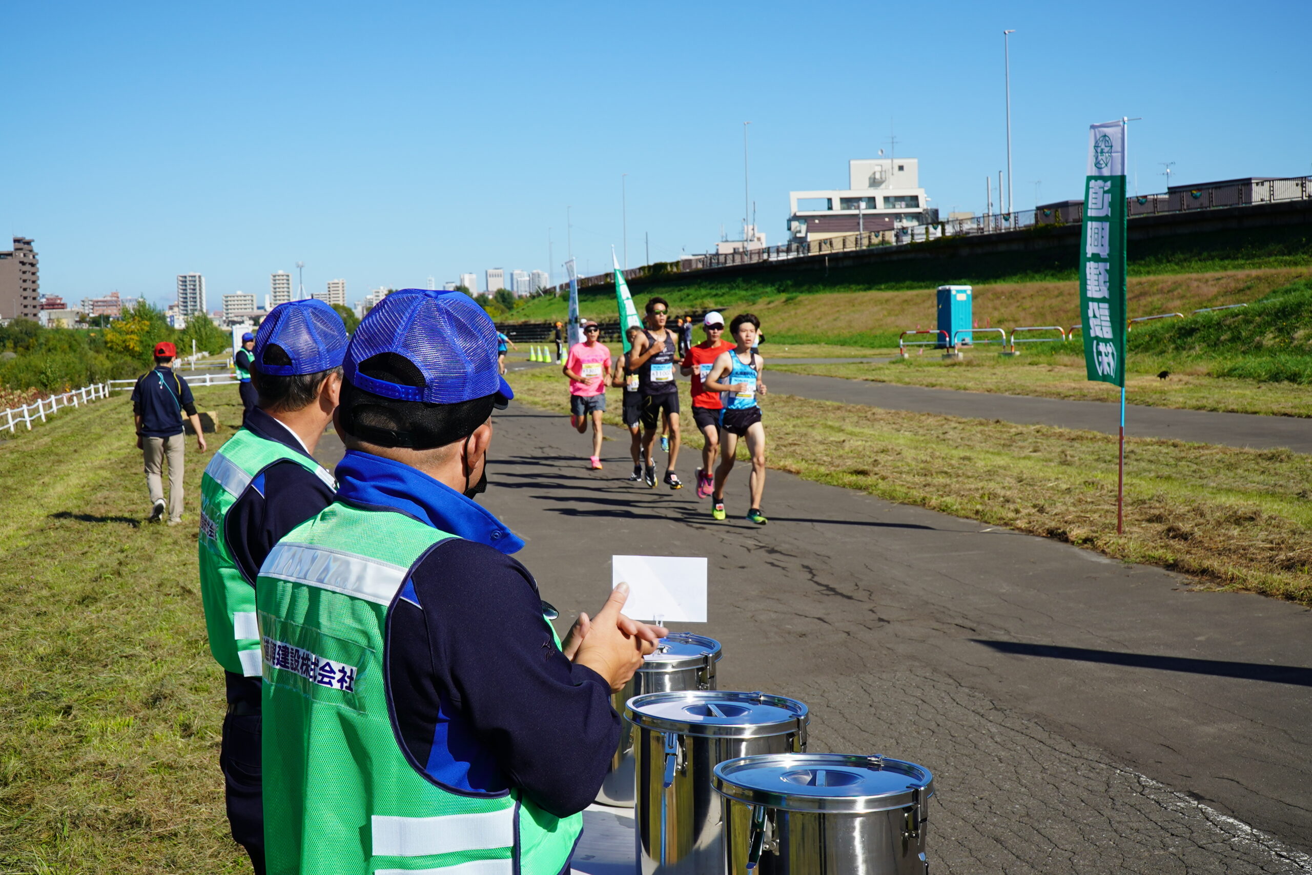 2017年より「札幌マラソン」のオフィシャルパートナーとして、大会の運営支援を続けています。沿道への簡易トイレ設置や、職員による給水業務などのボランティア活動に加え、近年ではランナーの暑熱対策として「ミストシャワー」を設置・提供するなど、市民が安心して楽しめる大会運営をサポートしています。