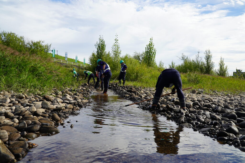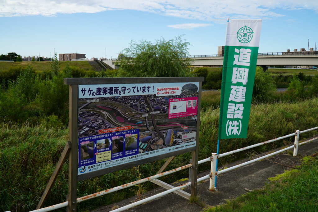 当社は、札幌市内を流れる豊平川に生息するサケの増殖を目指す市民団体「札幌ワイルドサーモンプロジェクト(SWSP)」を支援しています。2017年よりサケの産卵環境を改善するための水路の設計施工に協力しており、現在は全長200mにわたる水路の復元・維持に携わっています。また、社員や作業員によるボランティア活動を通じて、産卵床の整備や周辺の草刈りを行い、サケが安心して戻ってこられる環境づくりに努めています。