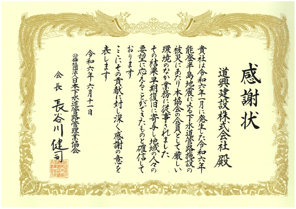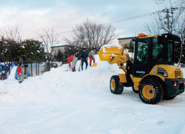 当社は、災害時に地域を支える需要な役割を担っています。地震や豪雨、豪雪などの際には自治体や関連団体と連携し、災害協定に基づいた道路や管路等インフラの応急復旧、除雪作業など地域の安全と早期復旧に貢献しています。