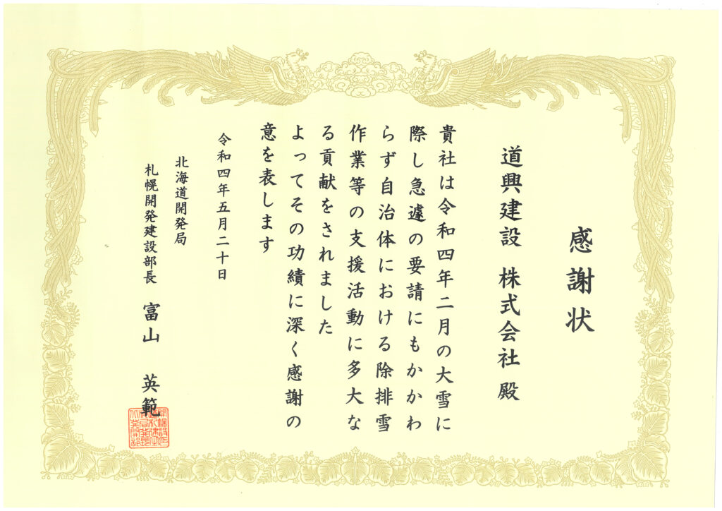 札幌市立もいわ幼稚園の園児たちのために、15年以上にわたり冬の雪山づくりボランティアを継続しています。重機やダンプカーを使用した本格的な雪山の製作は、地域の子どもたちが雪遊びを通じて季節の移り変わりや雪国の楽しさを体験する貴重な機会となっています。この活動は、教育財団からも高い評価をいただいております。