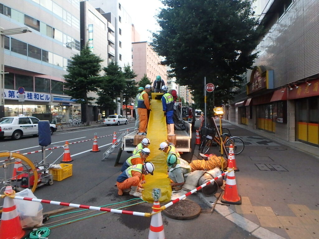本工事は、札幌市中央区ほかにおいて、下水管路の管更生を行うものです。