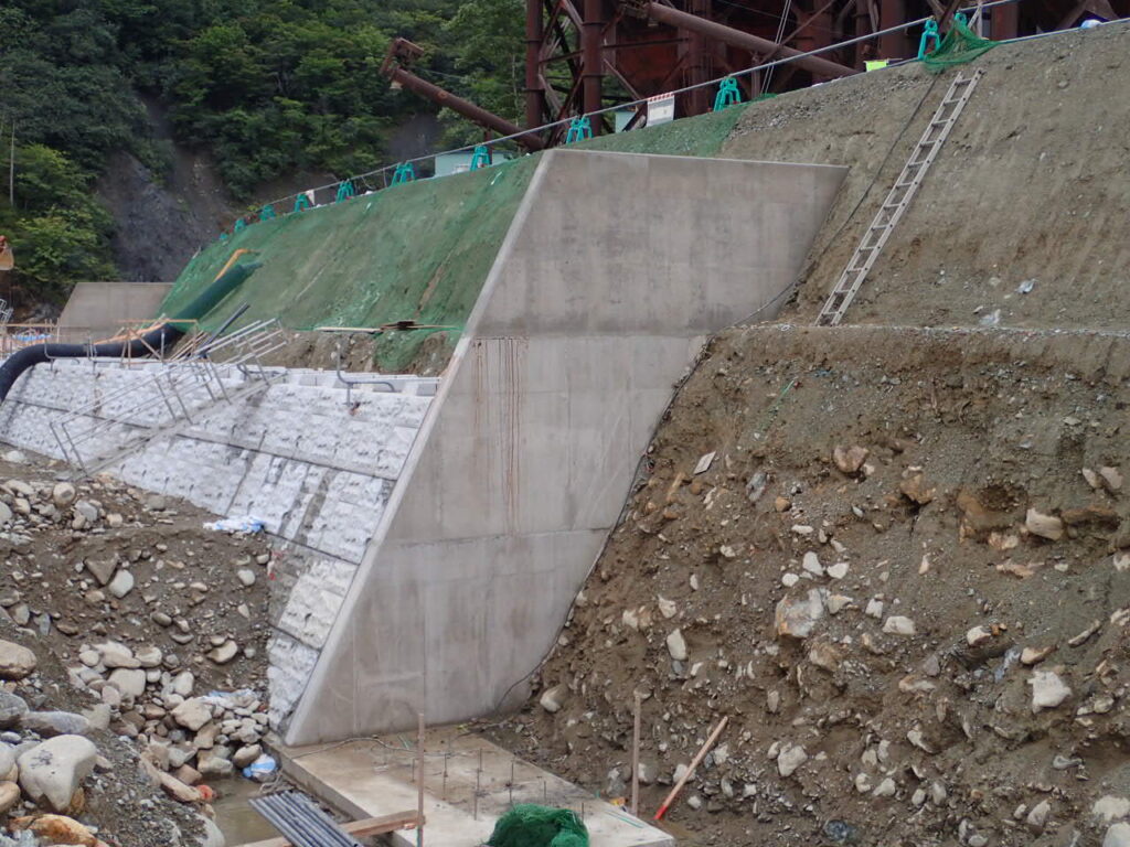 工事延長 L=208m 1)コンクリートブロック積工 A≒1,609m2 2)かごマット工 A≒568m2