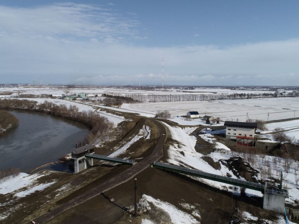 本工事は、千歳川河川整備計画に基づき、千歳川の築堤盛土及び西15号導水路の移設を行うものである。