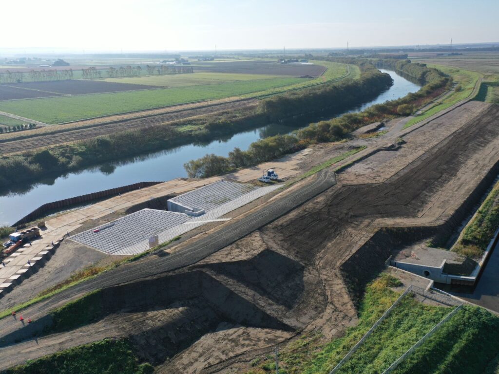 本工事は、石狩川河川整備計画に基づき、漁太築堤完成化に向けた盛土を行うものです。
