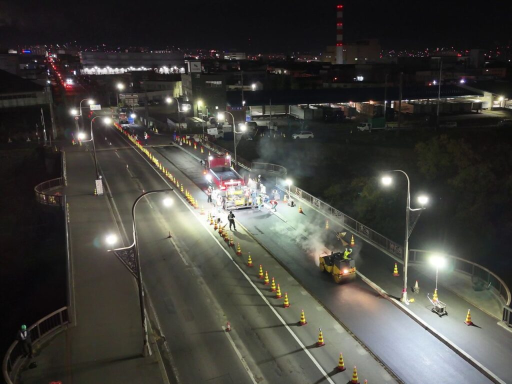 10月14日より天狗橋上面のコンクリート補修を昼夜間施工で行っています。現在は中央側に作業帯を移動しており、舗装復旧が完了する12月中旬まで、24時間の交通規制を継続いたします。この規制は、安全確保と施工の手順上必要な措置です。規制期間中は車線減少により、時間帯によって交通渋滞が発生しますので、可能な限り他の路線への迂回をご検討ください。地域住民の皆様並びに道路利用者の皆様には、長期間にわたり大変ご不便をおかけしておりますが、引き続きご理解とご協力をお願いします。